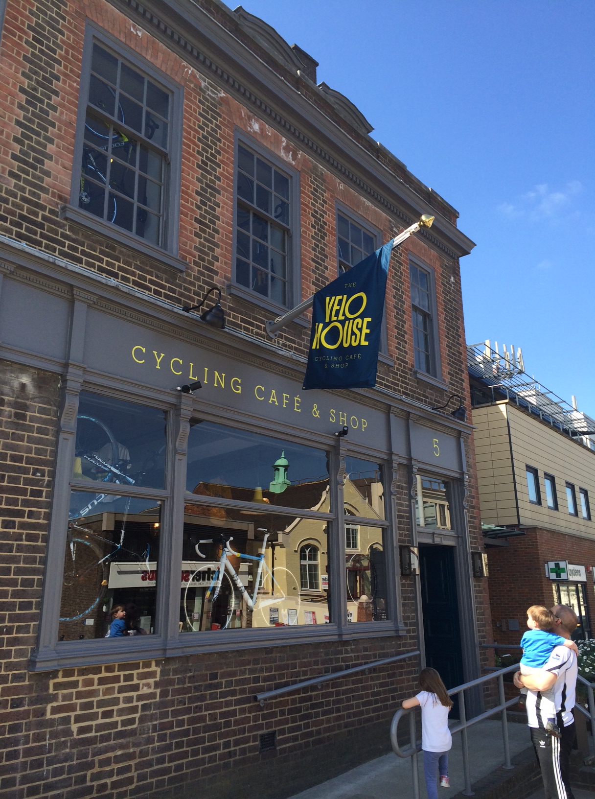 After two years of planning and four months of building, blue skies and Spring sunshine welcomed the opening of The VeloHouse cycle cafe & shop in Tunbridge Wells last weekend. I was more than happy to coincide a visit to the completed project with the chance to take my family to watch this year’s edition of Paris-Roubaix on a big screen with some good food and a few beers close at hand.