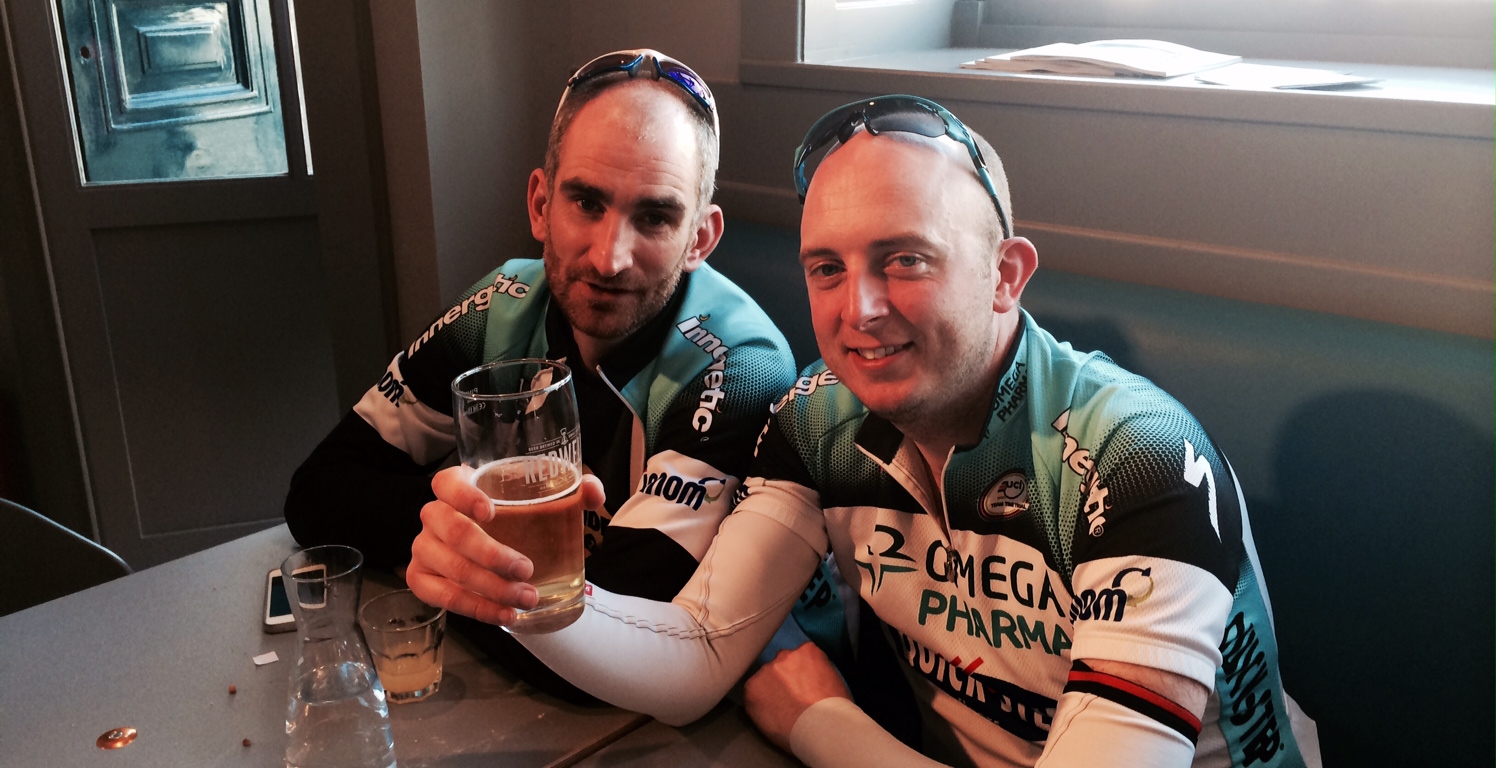 As the afternoon goes on and the secteur numbers count down one by one, more and more people turn their attention away from their food and concentrate fully on the screens downstairs. The whole place momentarily falls silent as Trek’s Hayden Roulston blunders off a kerb and seems to wipe out half the peloton. Greg Van Avermaet’s fall at Bourghelles brought a similar set of winces and groans from the group of assembled patrons. Ian and Tom, a couple of guys clad in full OPQS kit at the table next to us are clearly rooting for Boonen, Stybar or Terpstra but in the main the crowd are happy to see Thomas and Wiggins giving good accounts for the British contingent and just want to witness an exciting race. Ian tells me that he has given up a trip to Roubaix itself to come to The VeloHouse opening, which is a mark of how important it is being viewed in Kent cycling circles. Ian and Tom, who works for Quick-Step flooring here in the UK, are already planning their Grand Tour watching in what they describe as their new ‘local’.