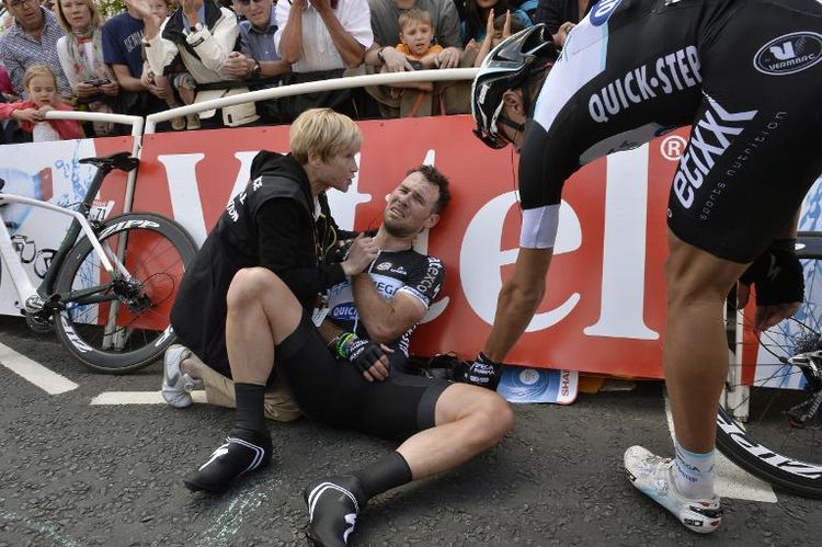 But there was no such respite for Froome. A clipped wheel on stage 4 brought him down and he looked half the man from then on. The challenging weather on Stage 5 and the peloton’s headlong rush to get the pave at the head of the pack sent nervous tension skittering through the pack and the tumbles started almost as soon as the racing did. Down once, down twice and then, as with Cav before him and Contador after him, it was clear that his race was over. The head dipped, the body went this way and that – not sure whether to go on or not – and then the realisation. Game Over.