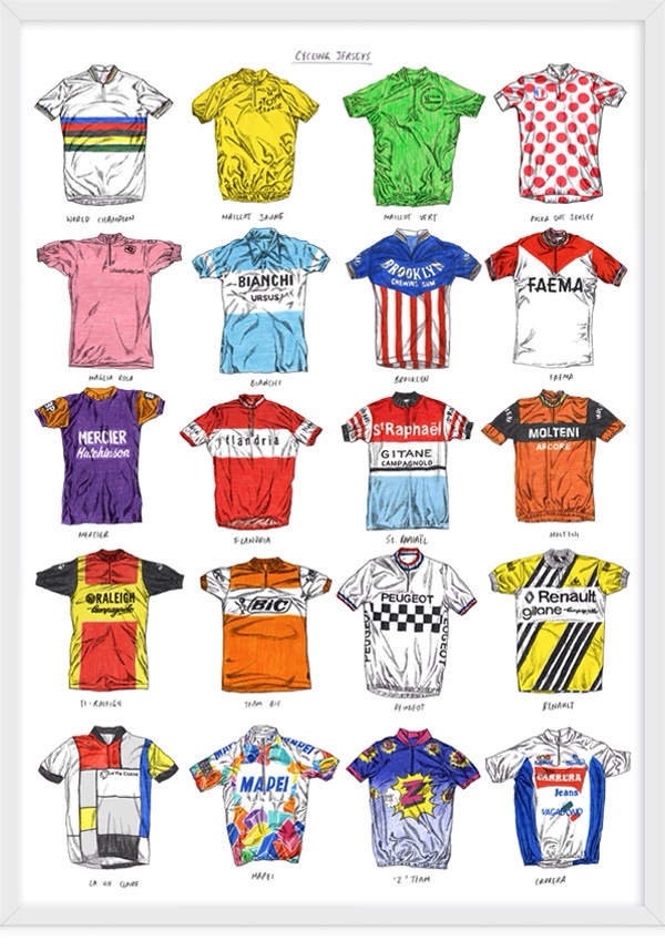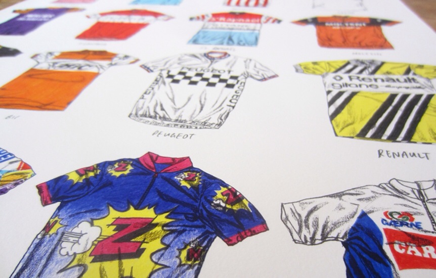 David has a deal on at the moment for two A2 prints for £100. If you are tempted by the jersey one I would suggest that the vintage cycle teams cars print would be an excellent pairing.