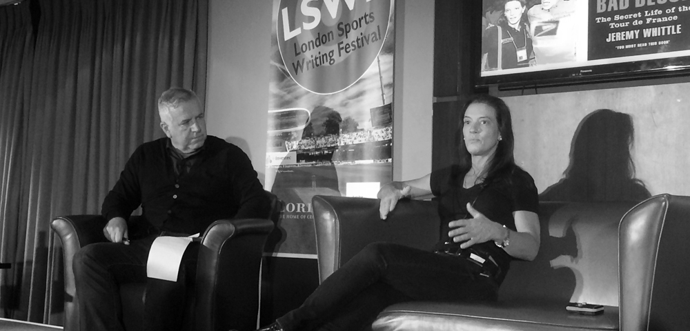 First up was The Cycling Anthology editor Ellis Bacon with sports journalist Brendan Gallagher and ex ANC-Halfords pro-rider Paul Watson. They mulled over some of the chapters from the new ‘Cycling Anthology Volume V’, which I have reviewed on the blog already here. Following them was the first of two female speakers that I was really looking forward to seeing. Emma O’Reilly was a key soigneur at the US Postal team during the Armstrong era and was close at hand throughout what she referred to as  ‘The Programme’. Her take on the doping, the lies, the lawsuits and the final fall from grace is that of an insider who, as one of the first to blow the whistle, bore the brunt of the attacks from those with the most to hide. Her talk with Jeremy Whittle was frank, revealing and hugely engaging. She sees what happens as a ‘human story’, with many layers of grey, rather than the black and white issue we as outsiders find it easier to make it. Her book ‘The Race To Truth’, which comes full circle with her meeting of an apologetic Armstrong following his Oprah Winfrey confession, has allowed her to finally close a long, painful, costly chapter in her life.