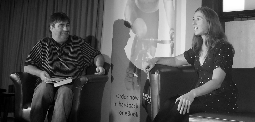 After a triple bill of cheating, spying and doping, it was good to get back to a bit of ‘proper cycling’ in the next talk. I say a bit but it took Brendan Gallagher a good five minutes to reel off the palmarès of the (still young) woman who sat opposite him on the small stage that had been the focal point of the day. Olympic Gold medallist, ten-time British Road Race Champion, two-time World Road Race Champion, Tour de France winner, Giro d’Italia winner, three time Flèche Wallone Winner, Tour of Flanders Winner, Amstel Gold Winner, etc etc etc.. Nicole Cooke is a cycling phenomenon and I use the present tense for, although she retired at the tender age age of 29 in January 2013 (in the days leading up to Lance’s Oprah appearance), I’m certain that Nicole is not yet done with cycling. Everything that she has said in the past, that she is doing at the moment and that she talks of regarding the future point to her returning to the sport to take it by the scruff of the neck and give it the shaking many feel that it needs. Nicole Cooke is passionate, intelligent and persuasive. And she’s off to do an MBA so that she can start a new career in business next. “I’d like to develop new business skills,” she said of her future plans,” And then, at some time in the future, I’ll consider working in the governing bodies on the big issues in the sport”. My feeling was that, just as in her career, she’ll be aiming even higher than that“Will we see you running for UCI President one day?” I asked her afterwards, having listened to her story of a lifelong battle against a system that had let her down time and time again. “Maybe..” came the reply, accompanied by a smile. Now, anyone with young children will know that, in their world at least, when a grown-u says “Maybe” they actually mean “Yes, but I’m not admitting that to you just yet”.  I wouldn’t bet against seeing her in the very top job at the UCI or WADA sometime in the future. Even if you don’t manage to buy her book The Breakaway’, just take five minutes and read her retirement statement.. I think you’ll get the measure of her..