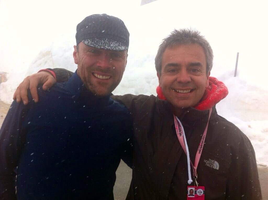 Good mates on and off-air: Rob Hayles and Simon Brotherton enjoying the weather at the Giro.