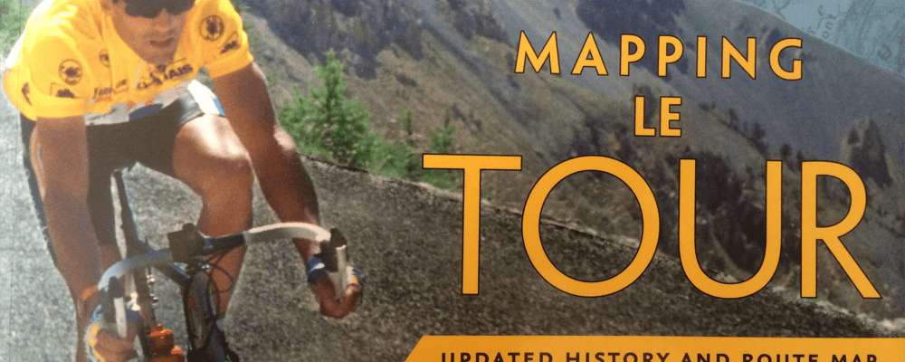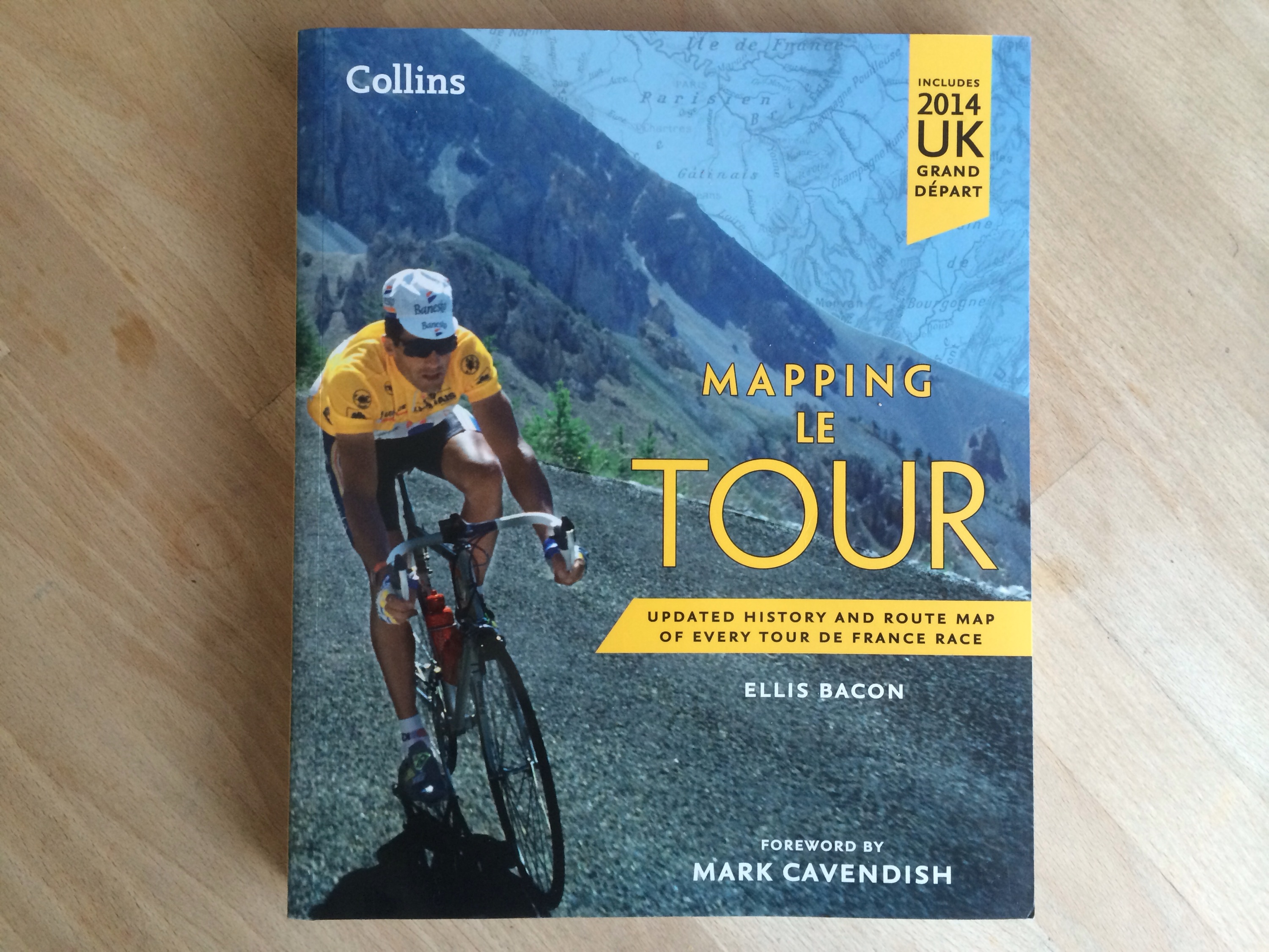 I’ve been thinking a lot about maps lately. My work on MassifCentral’s cycling info-graphic prints involves a lot of poring over the cartography of various cycling endeavours, so it should be no surprise that the book I’ve most recently performed a Jenga-esque extraction from the precariously large tower by my bedside is Ellis Bacon’s excellent Mapping Le Tour (Collins RRP £16.99).