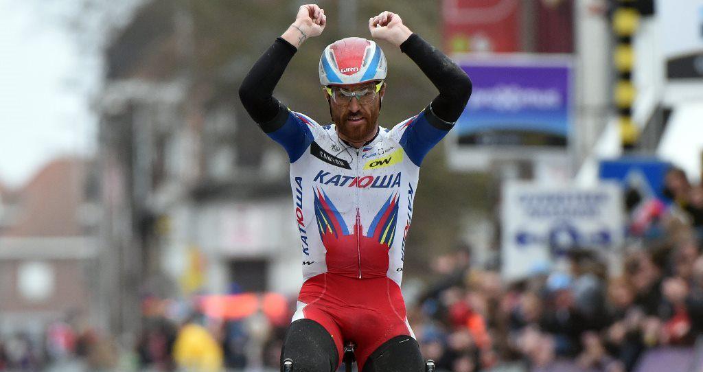 In the final throes of a scintillating race – which some experienced journalists were calling “the best Gent-Wevelgem” they’ve ever seen – Terpstra and Vandenbergh didn’tt take advantage of their number and the veteran Italian Paolini, who has been putting in monster shifts recently in service of his team leader Alexander Kristoff, seized on the growing indecision of the group and leapt away in an attack that none could resist. Terpstra and Thomas battled to the line for 2nd and 3rd respectively but the 38 year old was not to be denied. “It is the best win of my career” he said in the post-race interviews. “Next week I go back to helping Alexander.” Short of Thomas taking an amazing double, it was the best result. The Welshman will still be enormously satisfied with his long weekend’s work and will be going into the next races with his confidence Sky-high.