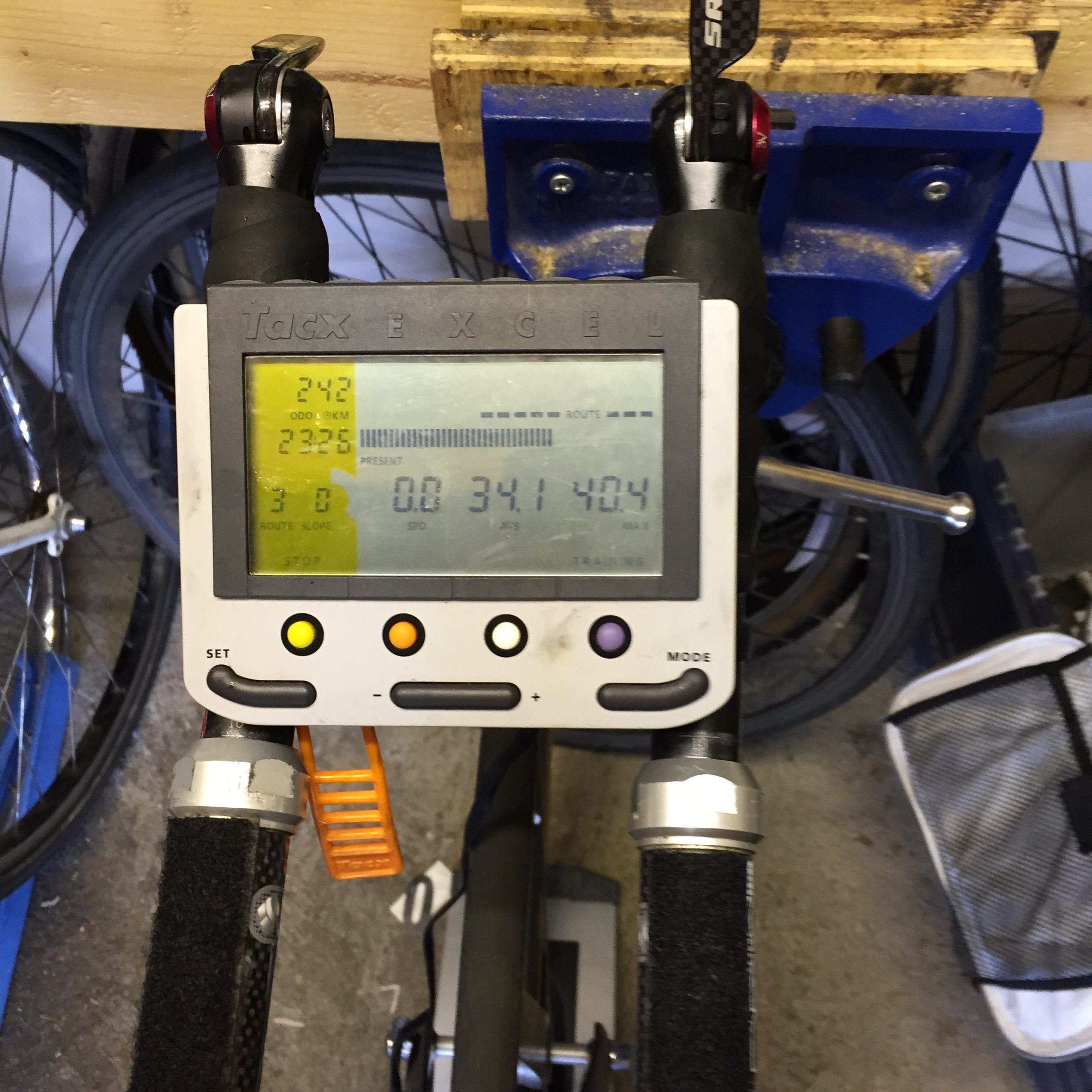 Of course the last ten minutes were the worst. Even though I knew I would beat Henri Desgrange’s mark, they were still insufferably awful. The last two ‘ascents’ (and the gentle inclines really felt like ascents now) saw my speed drop alarmingly and I had to resort to shouting at myself to keep myself going at anything like the rate I should have been. I’d been trying to work out where on the course would be best to finish and had attempted to engineer the close of the hour to coincide with the end of the downhill section when my average was highest but my slump on the slopes cocked it up and I ended up finishing half way back the slope again, shaving a couple of precious tenths off my average. Strava decided to steal another when I uploaded later. It’s a bloody good job I beat Henri by 1.5km because I would have looked pretty daft if I thought I had beat him by a tiny amount and then Strava had rounded me down below him again..