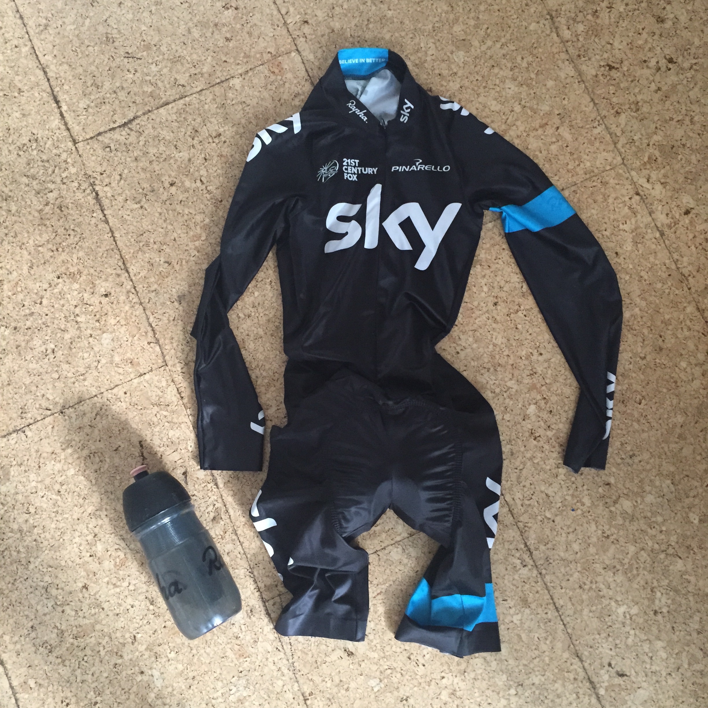 The aero-suit had arrived from Rapha two days earlier. They had kindly said that they would send something a while earlier but it had come with a lot of caveats, so I had opened the package with some trepidation. I had been warned that it was a prototype and was likely to split apart during use but, even if it did hold together, that the material was pretty ‘sheer’ and that my arse would be visible through it.. It sounded as though the dignity column in the ledger was about to take a few more massive hits. In the end they (wonderfully) just sent a Sky Pro Team aero-suit instead. The only problem was that it looked about 5 sizes too small. It took me a full 15 minutes, and a huge amount of bodily contortions, to get it on the first time – I still thought it was the flimsy prototype and was being extremely tentative with it. It turns out that this level of difficulty pretty much means that it is exactly the right size. Combined with a secondhand aero helmet from my online cycle forum and my rainy day overshoes, I was finally ready to go.