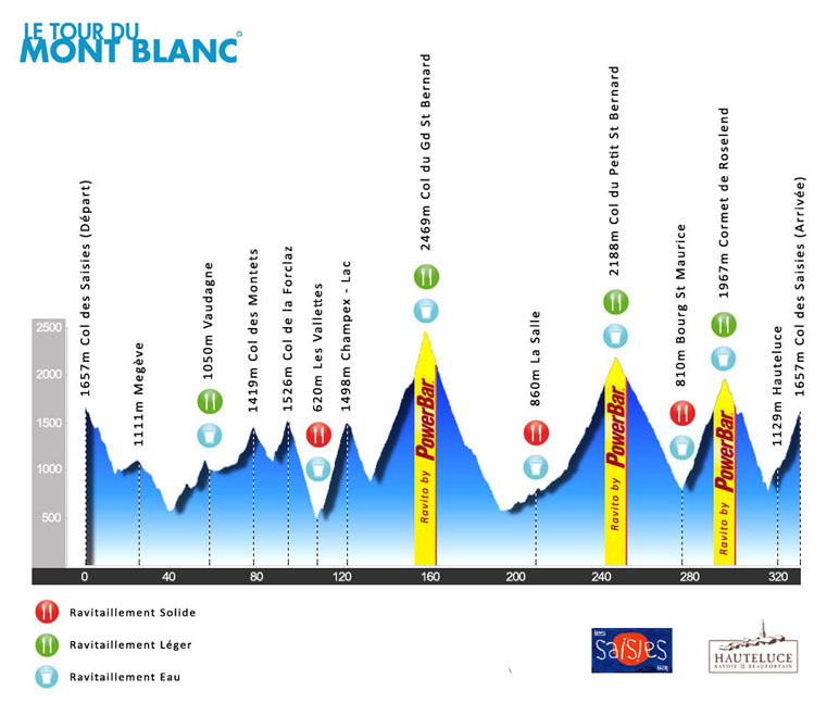 This weekend Mango and Alex are taking on what is billed as the “toughest single stage, high mountain event in the world”. The Tour Du Mont Blanc takes on a staggering 9,000m of climbing across its 205mile parcours. It crosses three international boundaries and there are nine climbs, of which FIVE (!) are hors category: the Col du Champex, Col du Grand St Bernard, Col de Petit Saint Bernard, Cormet du Roseland and the Col de Saises. The organisers liken it to riding The Marmotte – their other event – twice back to back, though experienced finishers reckon it more like three as the fatigue really starts to hit. For the faint-hearted (or the weak-willed) it ain’t.