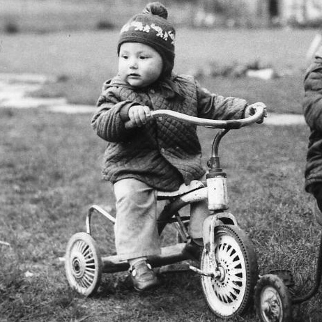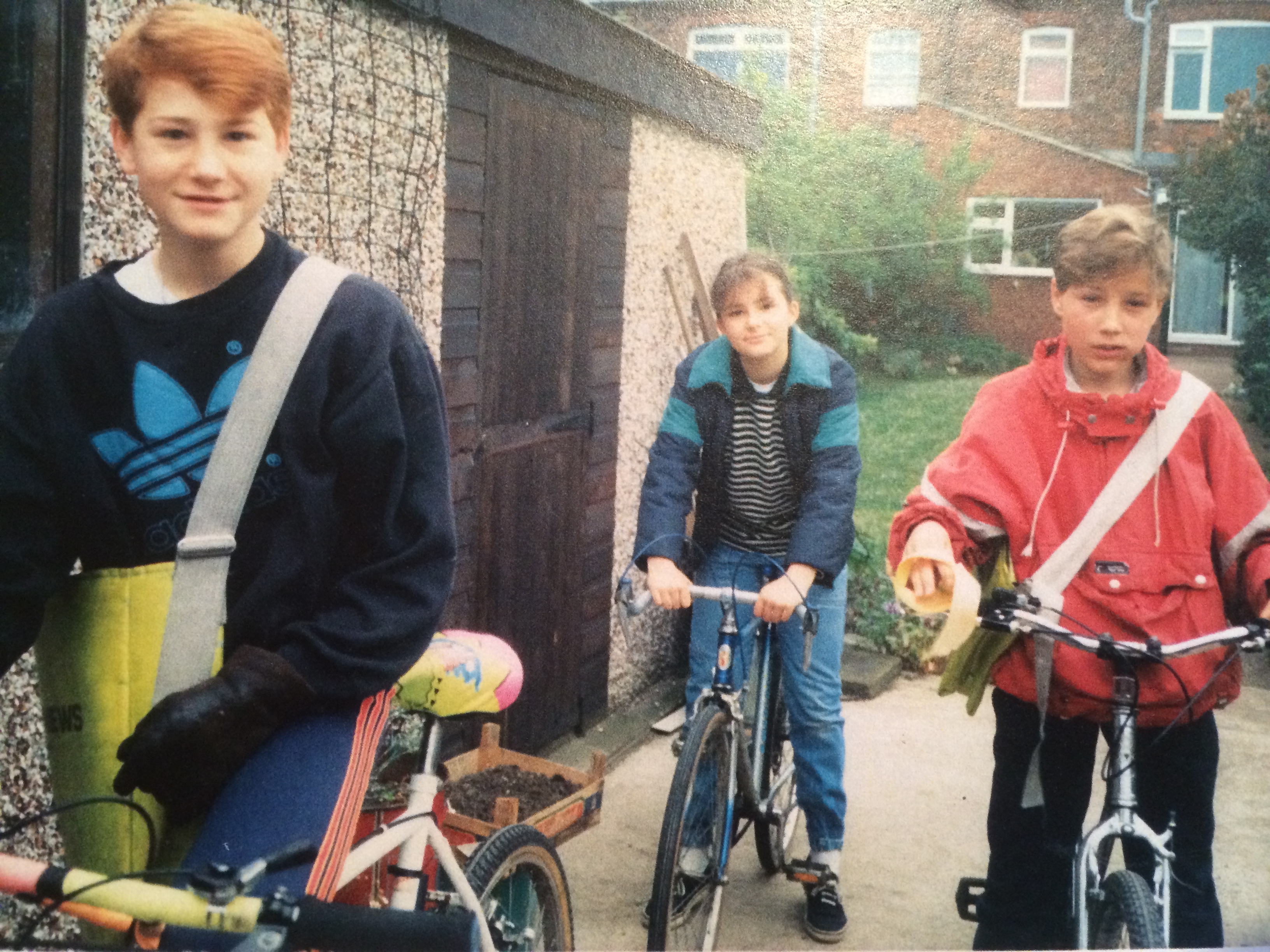 2. Purple 2 wheeler – solid wheels. Learnt to ride on that one… My sister is on it here. I’m on my brother’s old blue bike and he is on his new green Raleigh Strika.. Just don’t mention his white wheels – found by my dad as an emergency replacement the day before his birthday (the original ones both punctured) – they were not well received.